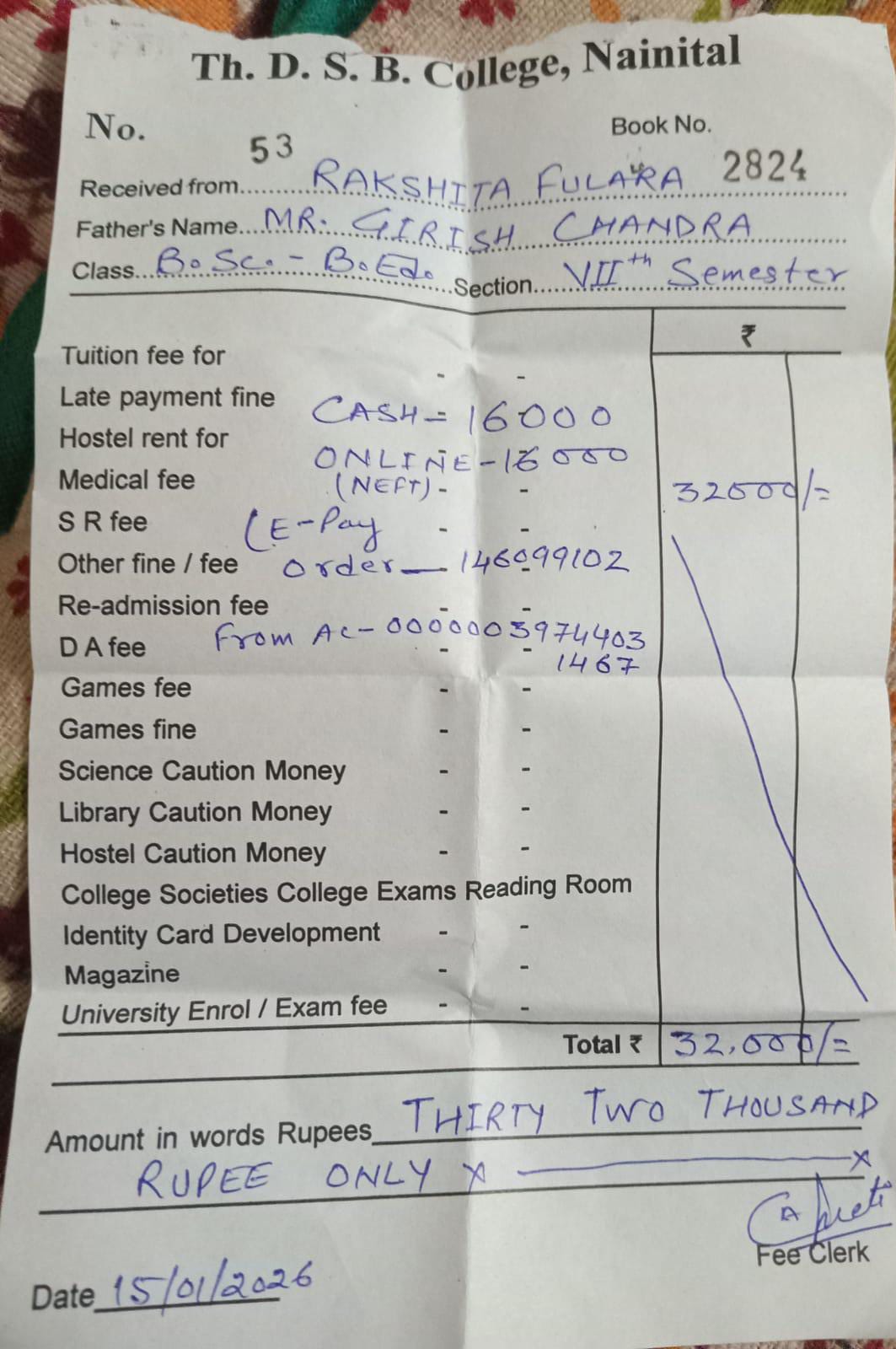 At this moment, I am struggling to arrange my college fee of ₹32,000, which is essential to continue my education without interruption. My family is doing their best to support me, but our financial condition makes it difficult to meet this amount.